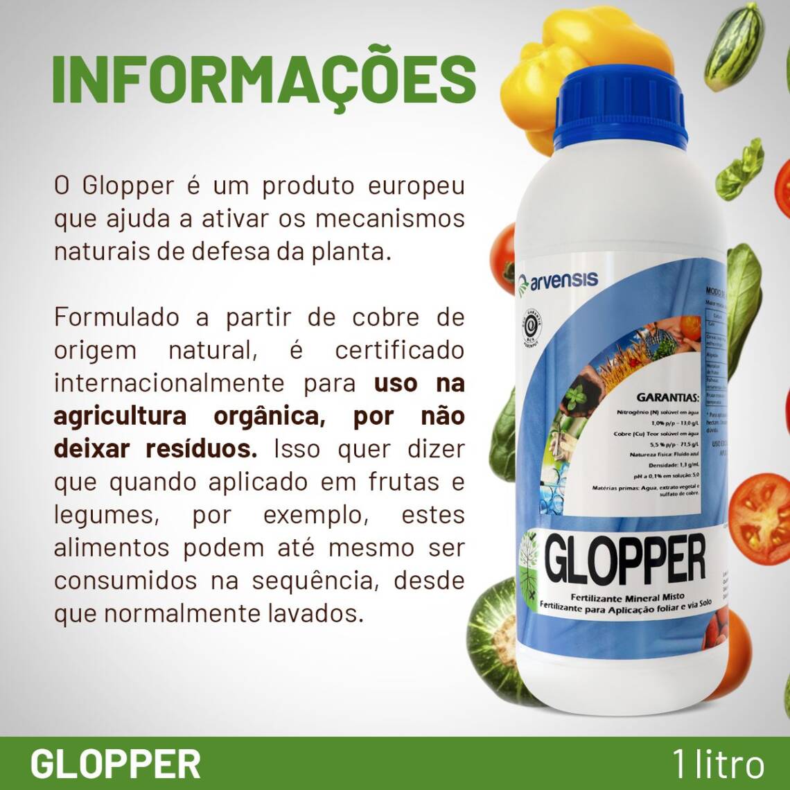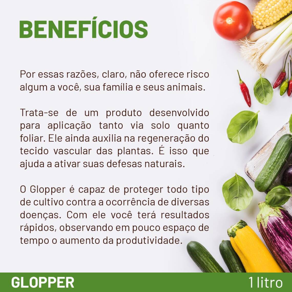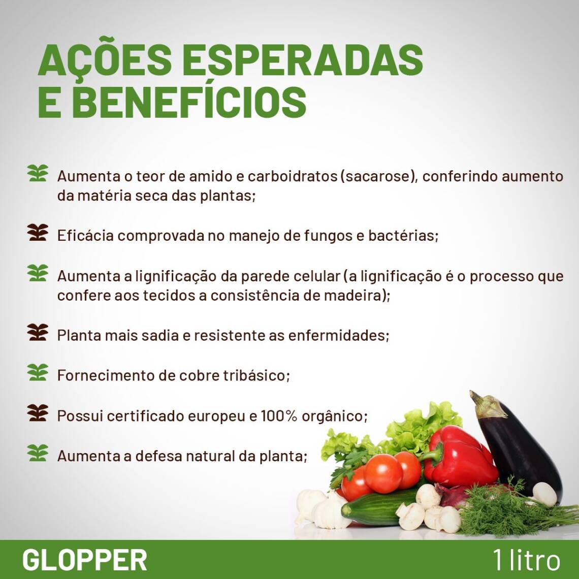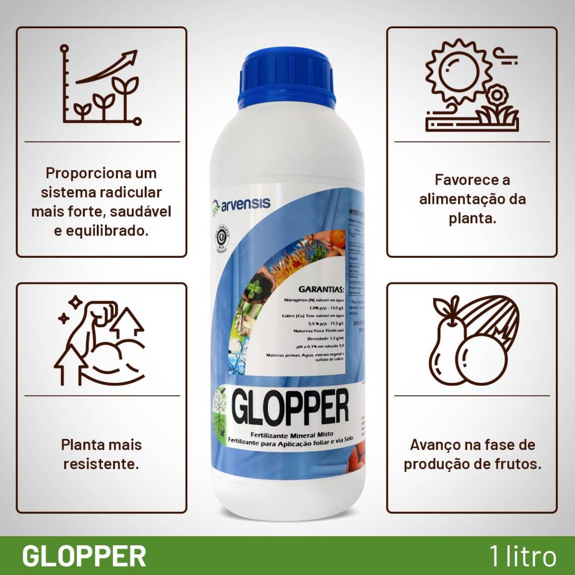 - Saúde e resistência: Deixe suas plantas mais sadias e resistentes às enfermidades com o poder orgânico do Glopper, protegendo seu investimento e garantindo uma produção estável.