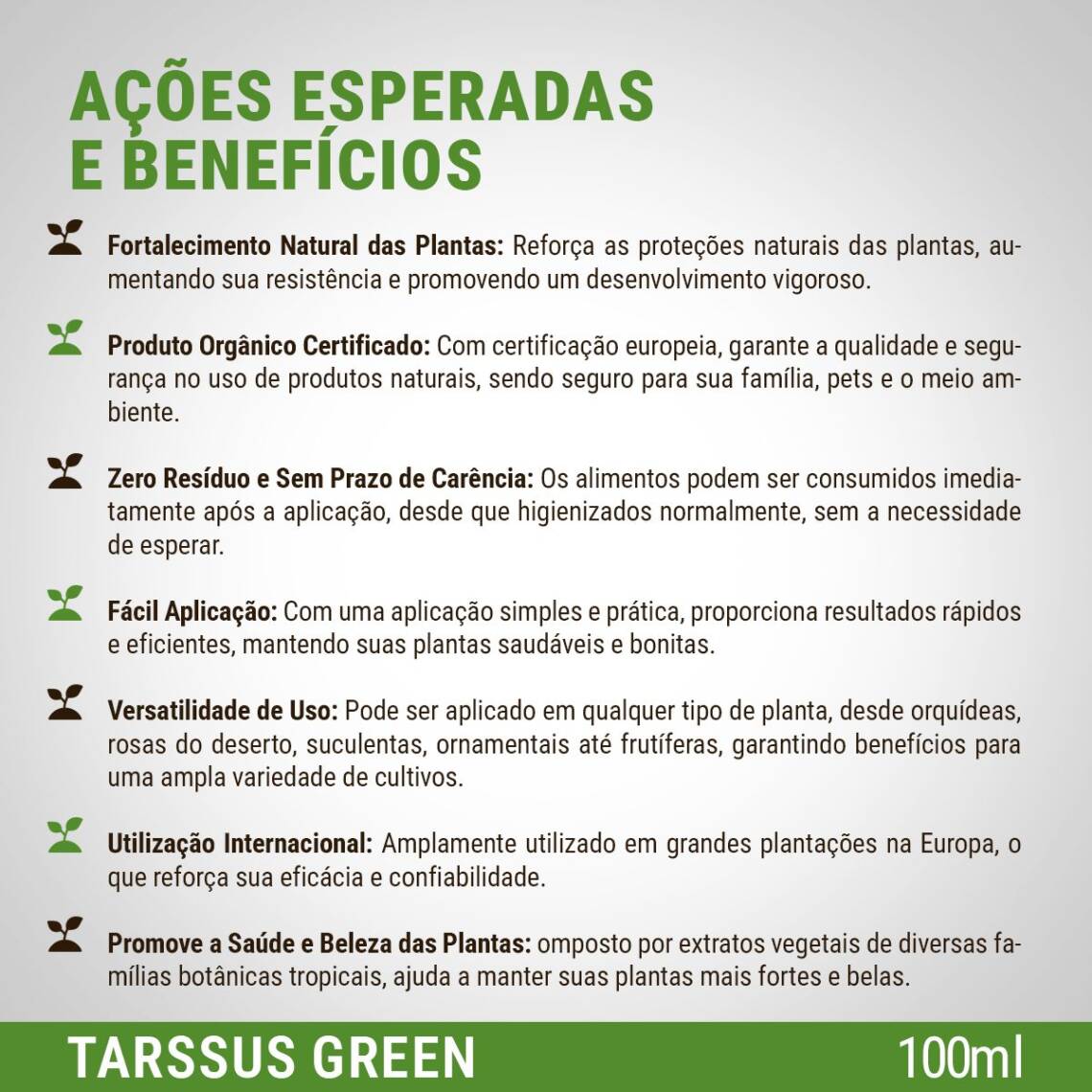Com uma fórmula inovadora e ecologicamente correta, o Tarssus Green é a escolha certa para quem quer ver suas plantas florescerem com saúde, beleza e sustentabilidade.