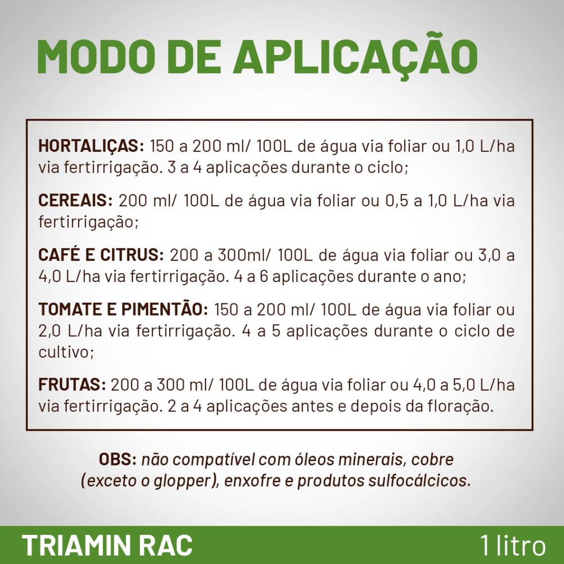 - Experimente o poder da nutrição balanceada e da proteção contra estresses ambientais com o Triamin RAC – a escolha certa para agricultores que buscam maximizar o potencial de suas plantações.